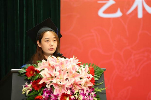 艺术学系副主任顾亚奇副教授作为教师代表发言,他从时代的现状出发,分析和解答了“艺术与时代”这一命题,为毕业生今后的发展提供思考。他认为,今天是一个科技发达、精神空乏的时代,既充满不确定性,也为艺术从业者提供了千载难逢的机遇,因为艺术是重要而不可替代的,只有艺术能担当现代人精神危机与集体焦虑的救赎者。他希望同学们在未来发展中,可以坚守文化艺术的精神家园,同时以“莫愁前路无知己,天下谁人不识君”的诗句,激励同学们多一份自信与豪情,勇敢地去开创自己的一片天地。