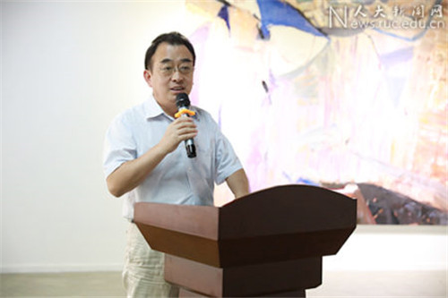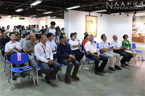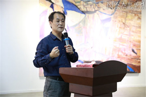 等一批在革命战争年代创办的学校对中国现当代美术发展历程的重要意义。同时,他对两组作品进行艺术点评。高天民表示,《山河颂》系列作品将人民大学的历史进行三段式划分,呈现了一种历史的延续性,创造性地用“写意”绘画的语言形式表现了一种新型的“历史风景”,也为这一概念在中国绘画界的探讨提供了契机;《吴玉章》的肖像画,其可贵之处在于作者运用巨大的尺幅来描绘吴玉章老校长,艺术家以特有的语言形式深刻地表现了朴素内敛的老校长为人民大学的建设和发展所作出的丰功伟绩。