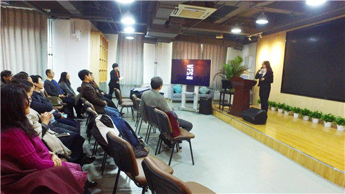 图3:温哥华电影学院北京办公室主任GRACE XU进行《加拿大温哥华电影学院数字影像与VR视听空间创新融合》的主题发言