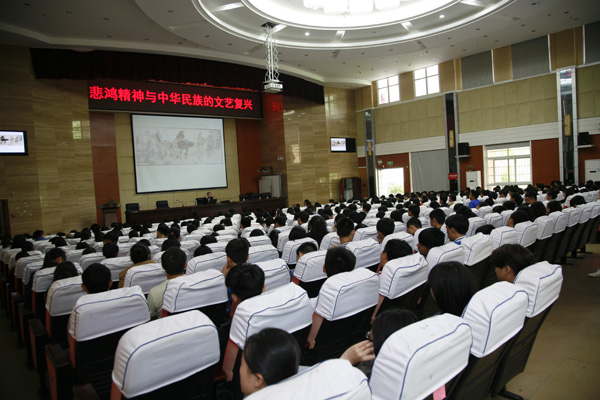 5月15日上午在重庆市南州中学学术报告厅,刘明才副教授举办了题为"悲鸿精神与中华民族的文艺复兴"的讲座,受到当地的机关干部、学生及广大书画爱好者的热烈好评。