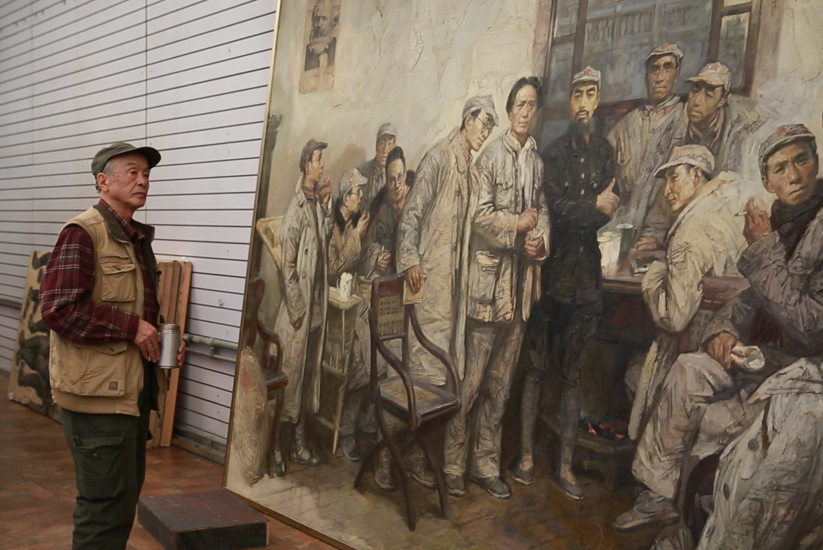 沈尧伊教授与长征的不解之缘,长征题材始终占据他艺术生涯中的核心位置。从1975年至今,他已经5次独自走访长征路线,创作了大型连环画《地球的红飘带》与大型油画《遵义会议》等经典作品。