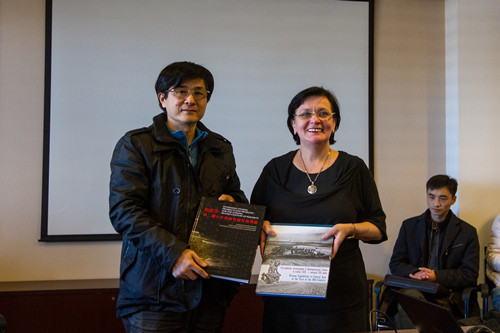 讲座最后,波波娃教授向学院捐赠了藏书。丁方院长代表学院接受捐赠并发言,他指出,此次波波娃教授的系列讲座为学院乃至学界了解俄罗斯艺术与敦煌艺术打开了一扇门,并期待今后能与俄罗斯圣彼得堡国立大学、俄罗斯科学院有更进一步的合作。