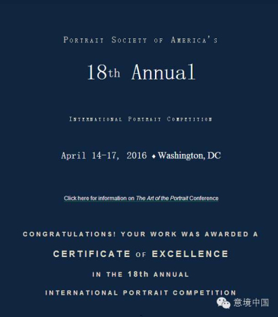 美国肖像画协会是国际著名的艺术机构,由其主办的“大奖赛”在全球主流艺术界闻名遐迩,对于入选和获奖“大奖赛”的艺术家来说具有莫大的荣誉,其标志着艺术家的艺术创作已经达到世界最高水平。同时,获奖作品也会在美国著名杂志《肖像艺术》、《国际艺术家杂志》上刊登。