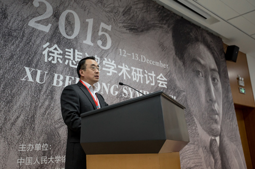 徐庆平院长发表致辞,他指出徐悲鸿先生的一生是“追求真理,广博知识”的一生,给予今天的我们重要的思考与借鉴。徐庆平院长认为当今中国的艺术正处于一个文艺复兴的时代,在此契机上召开本次研讨会有着非常重要的历史意义和现实意义。