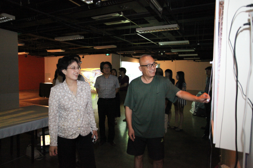 ,参观了设计系新媒体专业毕业生展览。在执行院长丁方教授、党委书记兼副院长郑晓华,副院长赵方、王英健,党委副书记别敏,设计系主任童岩,音乐系主任王玫及学院师生的陪同下,靳诺书记先后观看、体验了新媒体14位毕业生的作品。