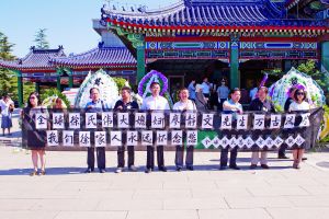 早上8:30,离遗体告别仪式开始还有半个小时时间,八宝山革命公墓大礼堂外的长廊就排起了长长的队伍,大家手里拿着菊花和纪念册等待进场,人群中不时传来小声的啜泣声。大礼堂的门口挂着高高的牌匾“沉痛悼念廖静文先生”,两旁摆满了各界人士送来的花圈,长廊里还有许多慕名而来的后辈和书画家为廖先生写的挽联。还有许多来自徐悲鸿家乡江苏、廖静文家乡湖南的后辈也专程来到北京送别廖老。