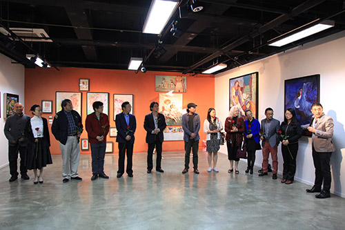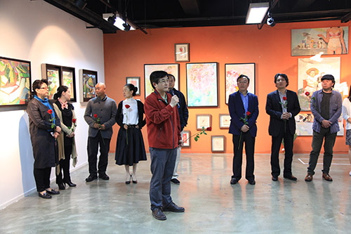 绘画系副主任王家增教授、设计系陈炯副教授简要介绍了此次展览筹办情况;绘画系油画教研室主任李晓宇和景观专业2011级孟伟明同学分别作为师生代表发言。