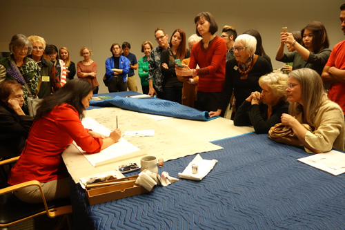 时值冬日,美丽的凤凰城温暖如春,正是一个飘满柠橙清香的季节,我院中国画专业师生与亚利桑那州立大学艺术与设计学院的师生们,在亚利桑那州立大学Step画廊举办了继2012年、2013年“反相对话”中美师生系列交流展之后的第三次展览。今年的交流展主题为“传统的革新”,展览期间出版了同名画册。亚利桑那州立大学副校长、艺术与设计学院院长及100多名美国师生及当地观众与我院师生一同出席了展览的闭幕酒会。展览期间,我院研究生的水墨作品深受美国观众的关注与喜爱,研究生参展作品约三分之一被当地藏家收藏。在凤凰城短短一周的交流访问期间,黄华三教授、高毅副教授作为访问学者应亚利桑那州立大学、凤凰城美术馆、亚洲艺术协会之邀,在凤凰城美术馆报告厅做了第九届Marilyn A.Papp中国画项目的主题演讲。黄华三教授的演讲题目为《中国当代水墨艺术现状》,概述了新中国成立以来的四代艺术家及作品。高毅副教授则现场演示了中国水墨人物写生以及中国画传统线描技法。在此次中国画学术研究项目中,凤凰城美术馆亚洲部展示了其丰厚的中国古代及近代作品馆藏。零距离大量观摩古代中国绘画精品,真切感受古代巨匠的笔墨气息,我院师生受益匪浅,感触极深。在布朗博士和马克教授的带领下,我院师生还参观了亚利桑那州立大学的教授工作室、画家工作室以及研究生工作室。在与美国教授、画家和同学们深入的交流与学习过程中,我院研究生对美国当代艺术教育,以及同龄人的创作思维及创作方法有了一个较为深入的认识与体会。凤凰城利桑那州立大学之行给同学们留下极为深刻的印象。