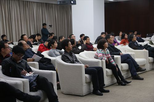 图书馆报告厅座无虚席,师生们在专心听精彩讲座