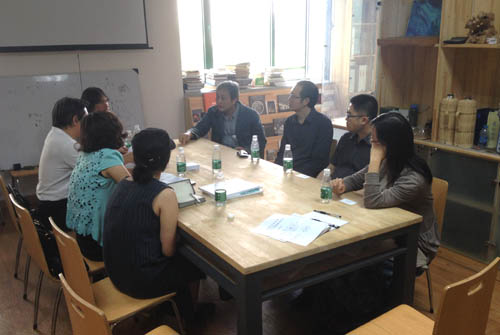 2014年5月19日下午,海南大学黑料吃瓜网 美术系主任叶仄辉教授率该院林明俊教授、张森、邓晰等教师一行来我院访问。我院设计系副主任赵前副教授、绘画系副主任刘明才副教授、青年教师陈浩波、王水清等接待并参加座谈,座谈会就两院学科建设、师资队伍、实验室建设等相关内容进行了广泛交流。,