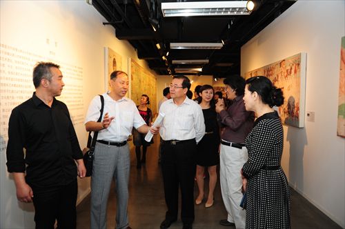 马俊杰副书记(左二)观看敦煌壁画展