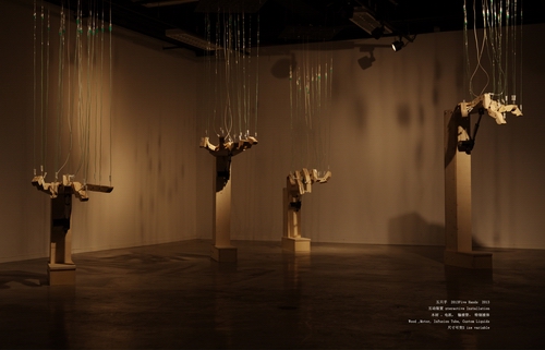 当代艺术创作的核心不仅仅在于创作方法层面的突破,也不在于艺术家的创作是否选择了从社会学、宗教学、哲学或是人类学等其它学科切入的角度。与此同时,我们同样不能把艺术创作简单地等同于科学研究或是工程的营造,艺术创作不是苦修、不是教条,重要的是艺术家的创作意图,而后才是如何智慧表达的问题。而这些内容我们可以在张沐辰的作品中发现端倪。《五只手》以五只自主运动大小一致高低不同的机械手为主体,通过输液器作为讯息节点,将注入讯息这一无意识的过程放大,通过对手介入而产生的这些非常规手势,表现人在现实生活外的另一种真实;《呼吸》通过呼吸为交互媒介,将人与人创造的新“生命”、改造的新环境相对立,作品在互动中忽略人的主体存在,将自身置于环境、人工、生命的关系之中进行现实的体验;《心率》将东方哲学中心作为身的内核这一理论进行解构,通过由互动产生的无限延展为意象的涟漪,作一次内心的自我观照,在短暂的时间内完成一场同参与者自身的对话;《手印》通过游戏般的手法大量伪造的新手印和手影的新结合,通过传统绘画与装置的结合,打乱已有知识体系对人思维的控制。