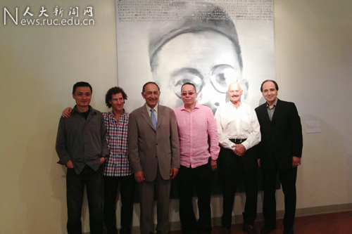 执行院长徐唯辛教授、展览策划人唐克扬和肯恩大学校长法拉希、国际交流部主任史提芬等众多肯恩大学教授及艺术爱好者一同观展。
