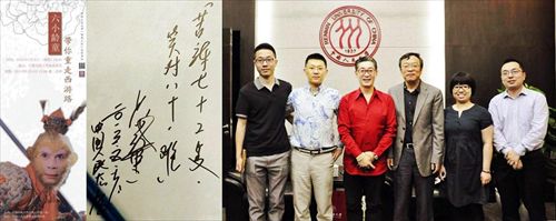 荣誉教授”的聘书。六小龄童表达了对徐悲鸿先生的敬仰,并会将自己的人生体悟和艺术见解与同学们交流。