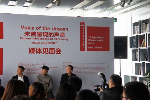 2013年4月22日下午,我院艺术学系兼职教授王林先生作为总策划人在今日美术馆召开了“2013威尼斯双年展平行展中国当代艺术展·未曾呈现的声音”新闻发布会。发布会由中央电视台著名主持人任鲁豫主持。参加发布会的还有中方执行策展人罗一平先生、意方执行策展人格罗莉亚·瓦利丝女士,展览总监向理先生,标志设计杨志麟先生等,以及北京各大媒体记者和自由艺术家们,艺术学系主任王文娟副教授受学院委派作为院长代表也参加了发布会。