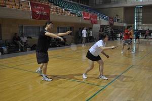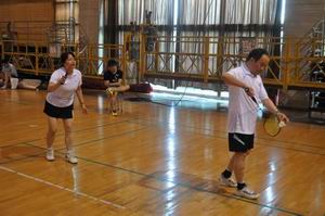 杨明明老师、钱军老师在女双比赛中 杨戈芳老师、英帆校友在混双比赛中