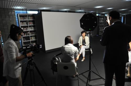 图11 访韩期间,代表团拜会了在任期间推动中韩建交的韩国前总统卢泰愚之女卢素英女士。卢女士在家中宴请中方代表团。宴会后卢女士接受记者采访