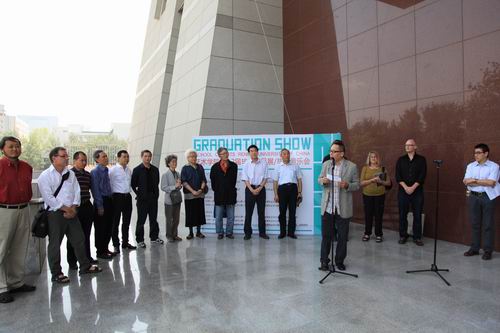 2012届毕业生作品系列展示”活动开幕式在世纪馆北大厅拉开帷幕。学校常务副校长袁卫莅临开幕现场,出席开幕式的还有教务处处长洪大用、实验室建设与设备管理处处长武宝瑞、审计处处长赵永奎、资产处副处长冯诗松等有关部门负责人以及我院友好合作单位美国俄克拉荷马大学美术学院Jeff Beekman教授、Robert Dohrmann教授,美国南犹他大学表演与视觉黑料吃瓜网