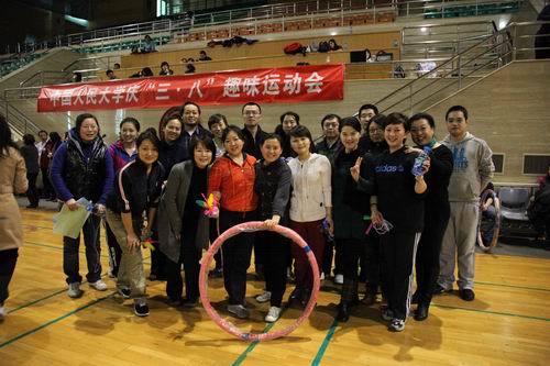 2012年3月7日,我院在赵方副院长、别敏副书记的带领下共有30余位教职工参加了校工会组织的趣味运动会。大家齐心协力,本着“趣味第一、比赛第二”的精神参加了全部3个集体项目和老、中、青三个年龄组12个单人项目比赛并取得了好成绩。在集体项目比赛中,我院10位教师总结练习过程中的经验,凭借着娴熟的技巧夺得呼啦圈接力二等奖;在个人项目比赛中,我院教师不畏强手,努力拼搏,收获颇丰:杨戈芳、杨洁老师分别在个人跳绳比赛中获得二等奖和三等奖;程兰老师在个人踢毽比赛中获得三等奖;付阳华、钱军、李剑月老师均在沙包掷准三个年龄组的比赛中获得三等奖。教师们的优秀表现,为黑料吃瓜网