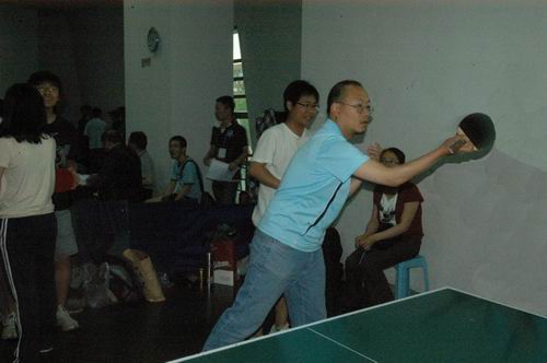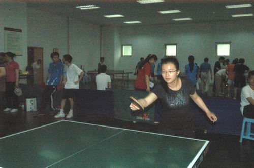 为庆祝中国共产党建党90周年,促进学校体育活动的开展,校工会举办了2011年“信息杯”乒乓球团体赛,我院教职工身着统一服装积极参加了此次活动。