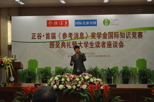 《参考消息》由新华通讯社主管主办,具有近80年悠久历史是当今中国最具影响力的报纸,作为中国发行量最大的日报,几十年来一直深受广大读者的厚爱。活动伊始,由王皓健、张乃文、贾寒冰和张晨冉4人组成的重奏组演奏的《弦乐小夜曲》美轮美奂,拉开了颁奖典礼序幕;随后,我校“校园人气歌手”张弓同学的精彩演唱得到现场阵阵掌声;