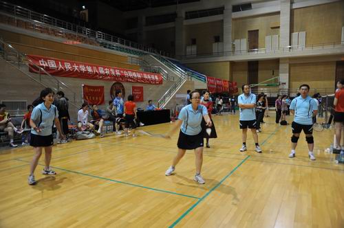 第八届农发杯“白羽惜别”羽毛球团体赛,于2010年5月7日至9日在人大世纪馆举行。当天下午,在赵方副院长和别敏副书记带领下,由赵朝平老师担任领队的我院羽毛球参赛队员身着统一的球服准时到场出席开幕仪式。