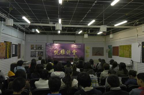 小展厅作了题为“谈相声与语言艺术”的讲座。讲座由我院党委书记兼常务副院长郑晓华教授主持。参加本次讲座的有优雅女子学堂的全体学员、音乐表演系以及我院相关专业的部分师生。