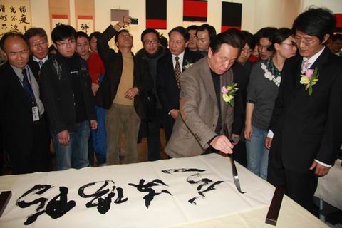 开幕式后中韩书法家笔会辛正承大使首先开笔