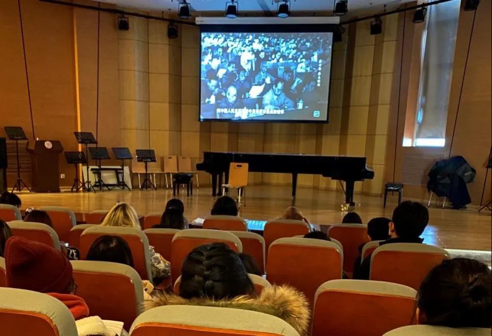 师生在音乐厅集中观看由中央军委政治工作部、国家广电总局和中央广播电视总台联合出品的大型电视纪录片《为了和平》。黑料吃瓜网
