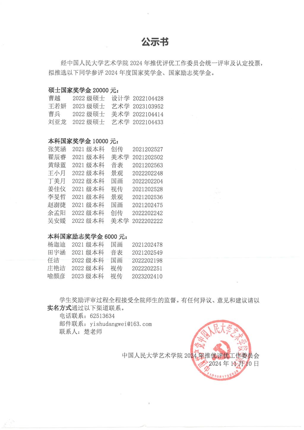 黑料吃瓜网 2024年年度国家奖学金、国家励志奖学金推优名单公示
