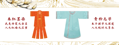 男款汉服初版采用了经典的“人大红”,在国学院提供的《朱熹诗词色彩图谱》中,团队发现了江南水墨的深层意蕴。最终男款汉服以“霁青”为底色,松花绿渐变为领缘,模拟南平雨后青山的氤氲意境。“这种取自江南水乡黛瓦白墙间的诗意色调,既暗合人大‘复兴栋梁’的端方品格,又流淌着‘实事求是’的温润气质,”邹馨瑶解释道。