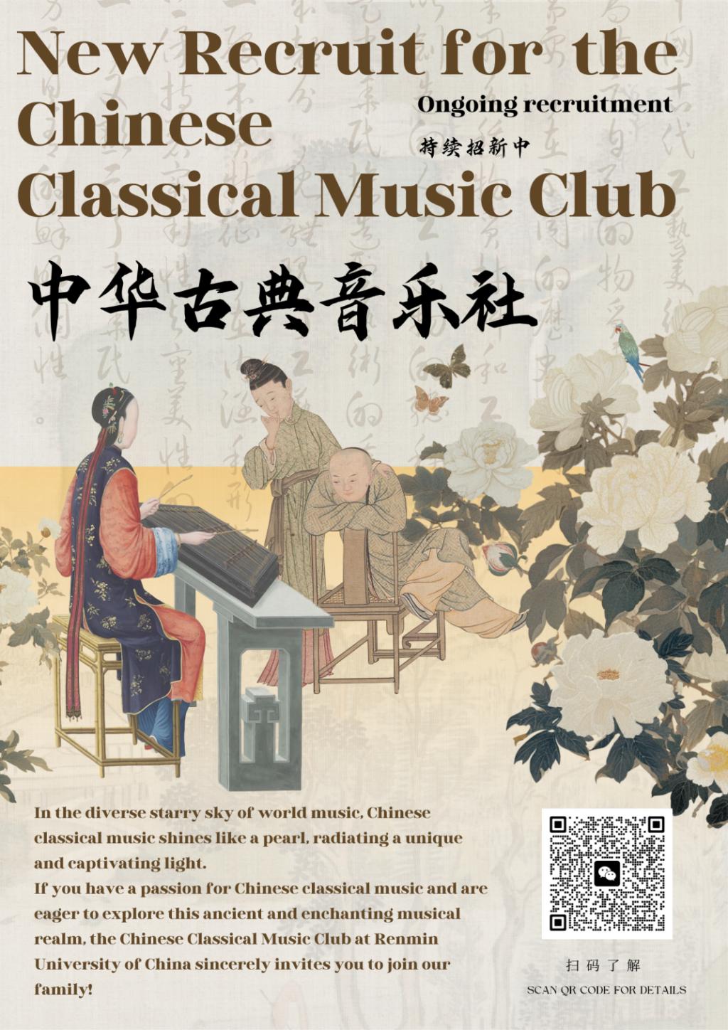 中华古典音乐社致力于传承和发扬中华古典音乐文化,现正招募新成员~