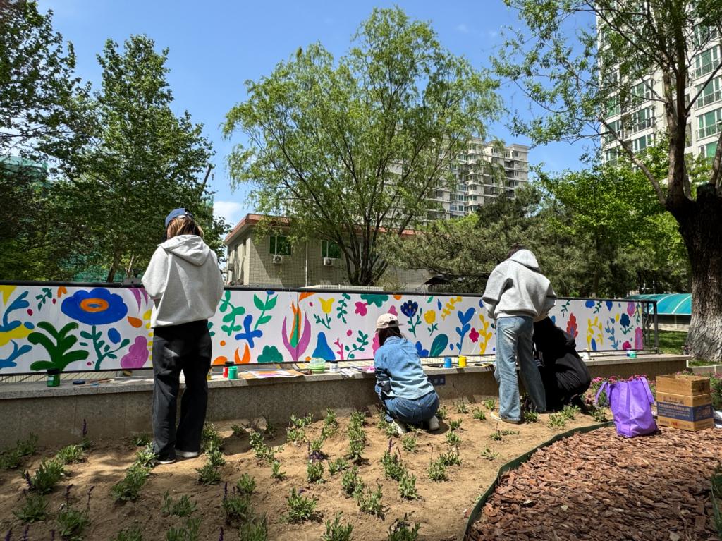 作为参与其中的“青春创艺力量”,党支部积极承担了社区微花园轮胎景观小品与背景板彩绘的设计工作,创作“育见花开,同心向未来”主题方案,力求以富有生命力的艺术语言为社区环境注入更多色彩。