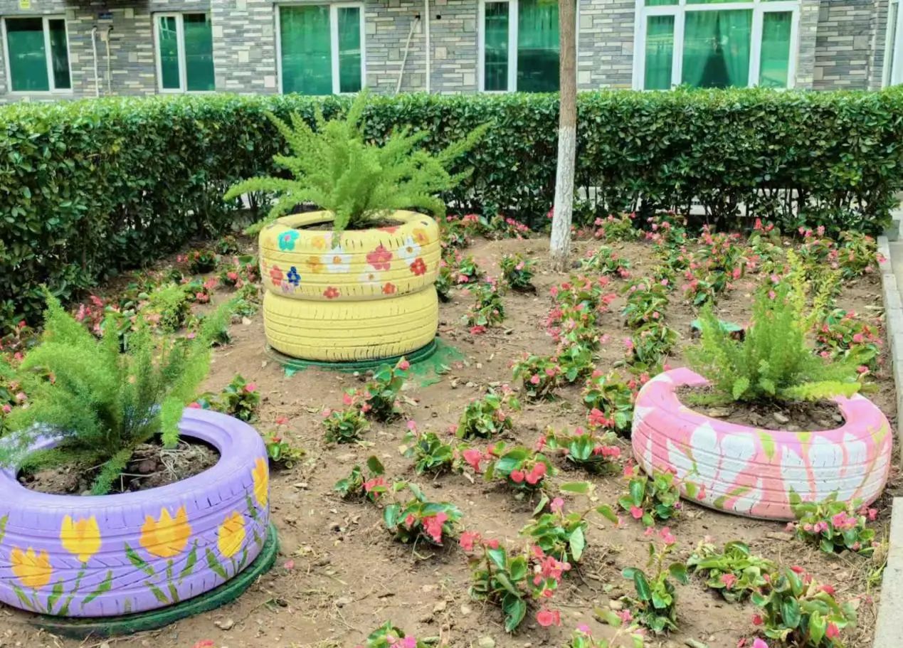在实践过程中,同学们通力协作,连夜完成轮胎和背景板底漆刷涂,确保色彩的饱满持久和艺术效果的最终展现。社区的小朋友们也在同学们的指导下参与到轮胎涂色中,增添了更多童趣与活力。