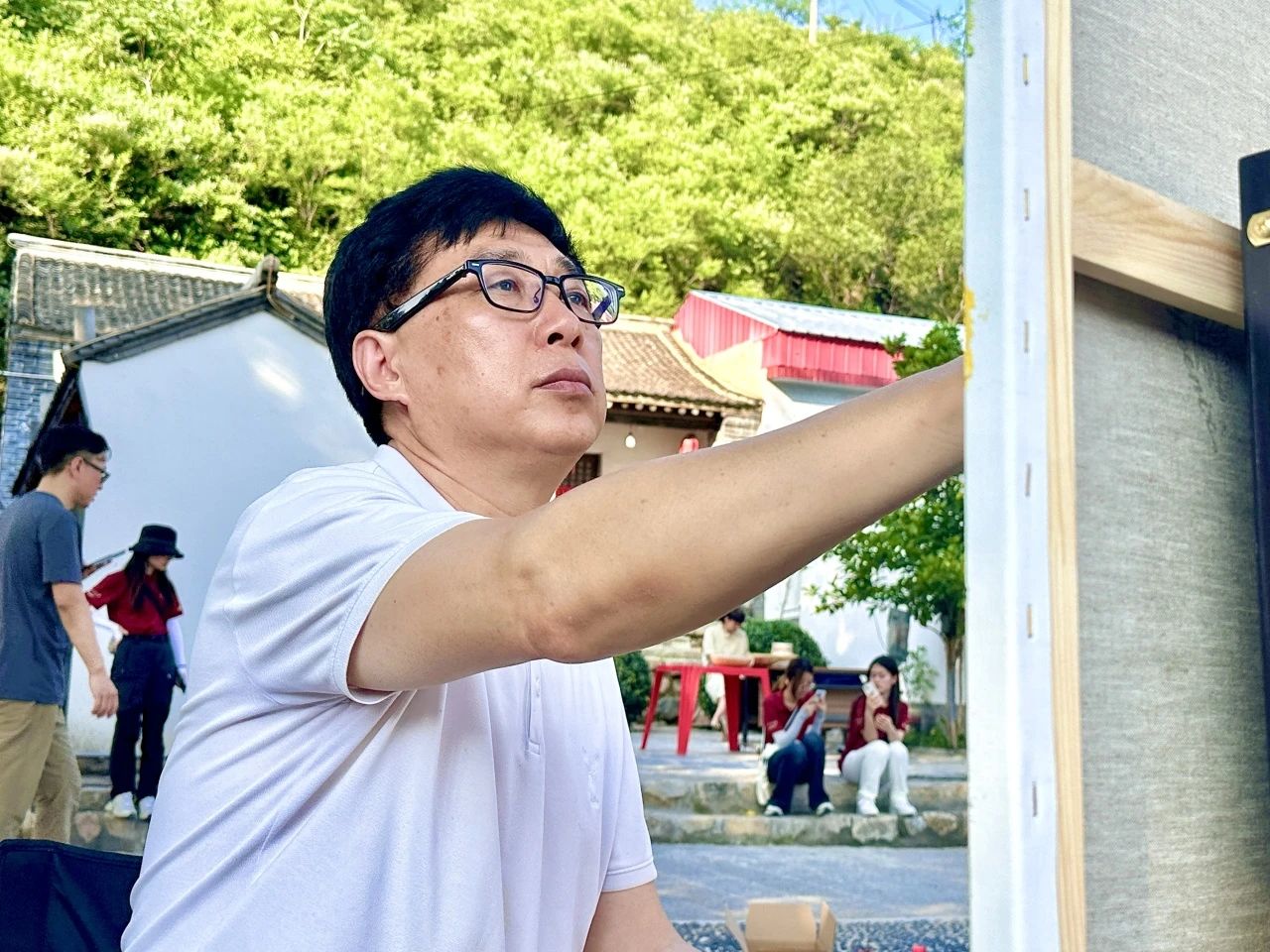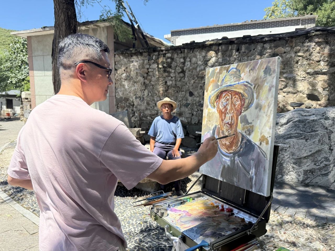 7月4日至5日,采风团开启了本次行程的第一站,踏访华北联合大学旧址,探寻晋察冀边区的红色记忆,记录太行山脉苍翠间仍留存的革命岁月炽热印记。艺术家与师生们用脚步丈量校史根脉,用画笔描摹革命初心,在这片承载着敌后高等教育奋斗史的土地上,开启了一场跨越时空的“红色对话”。