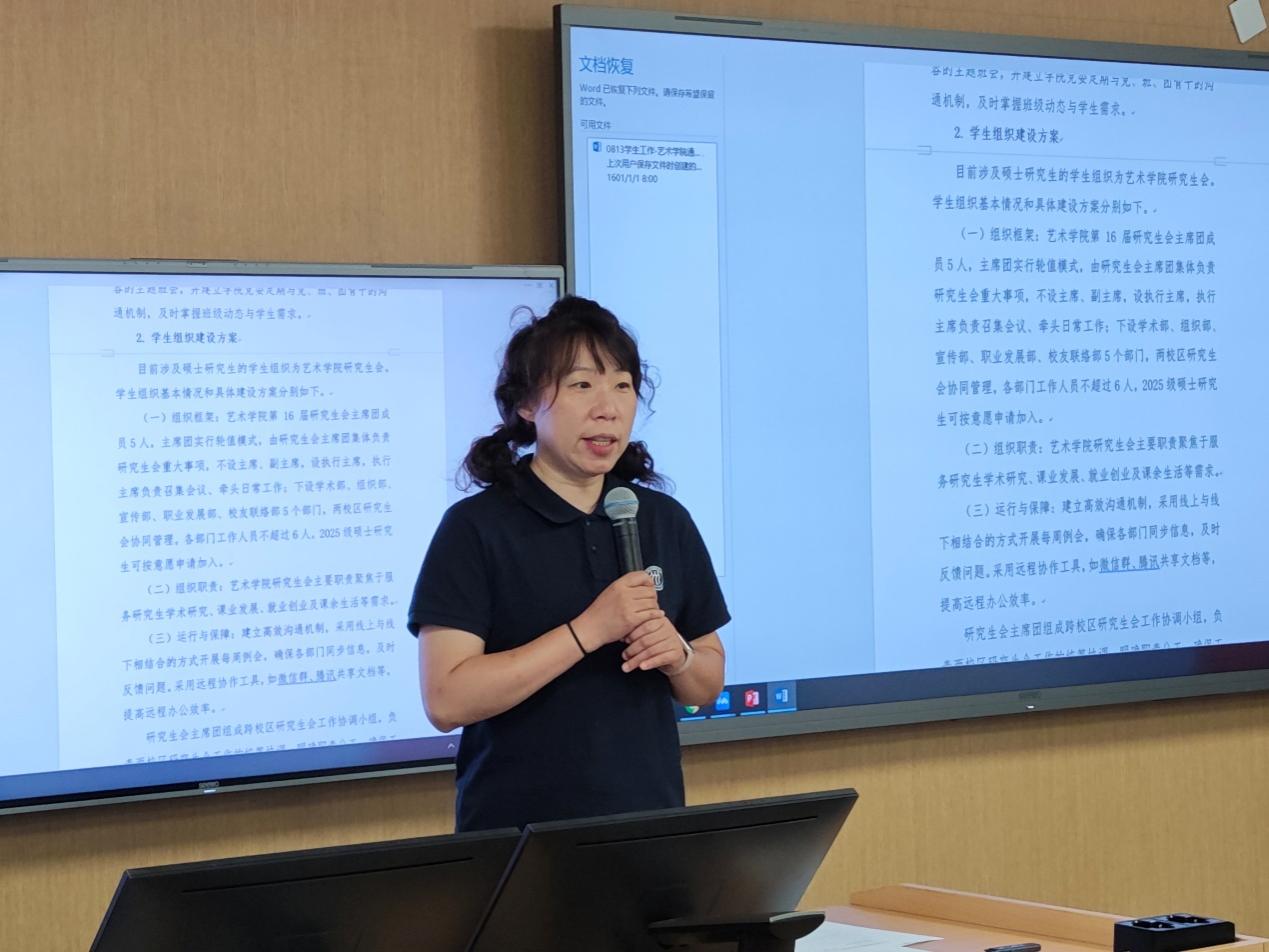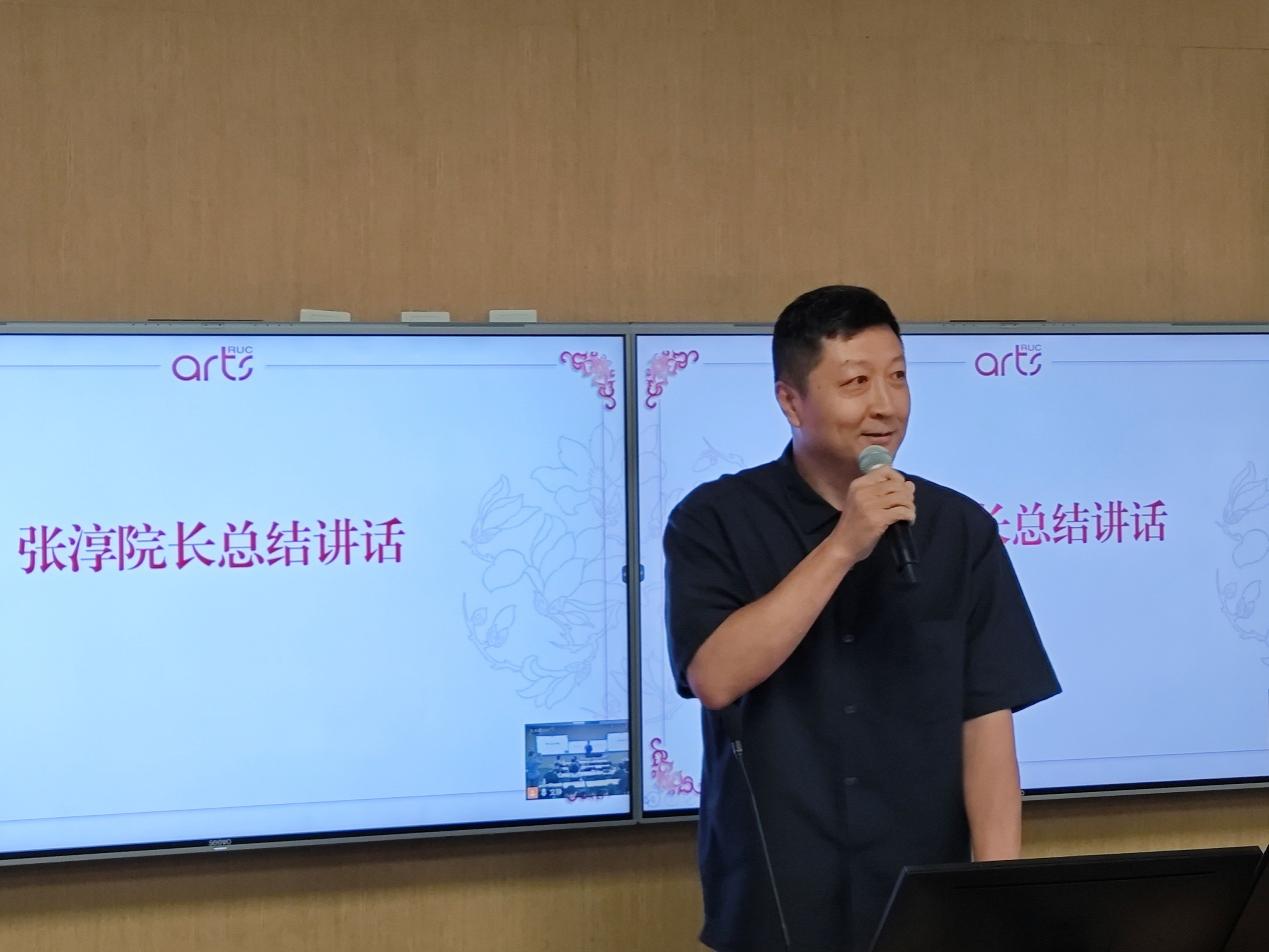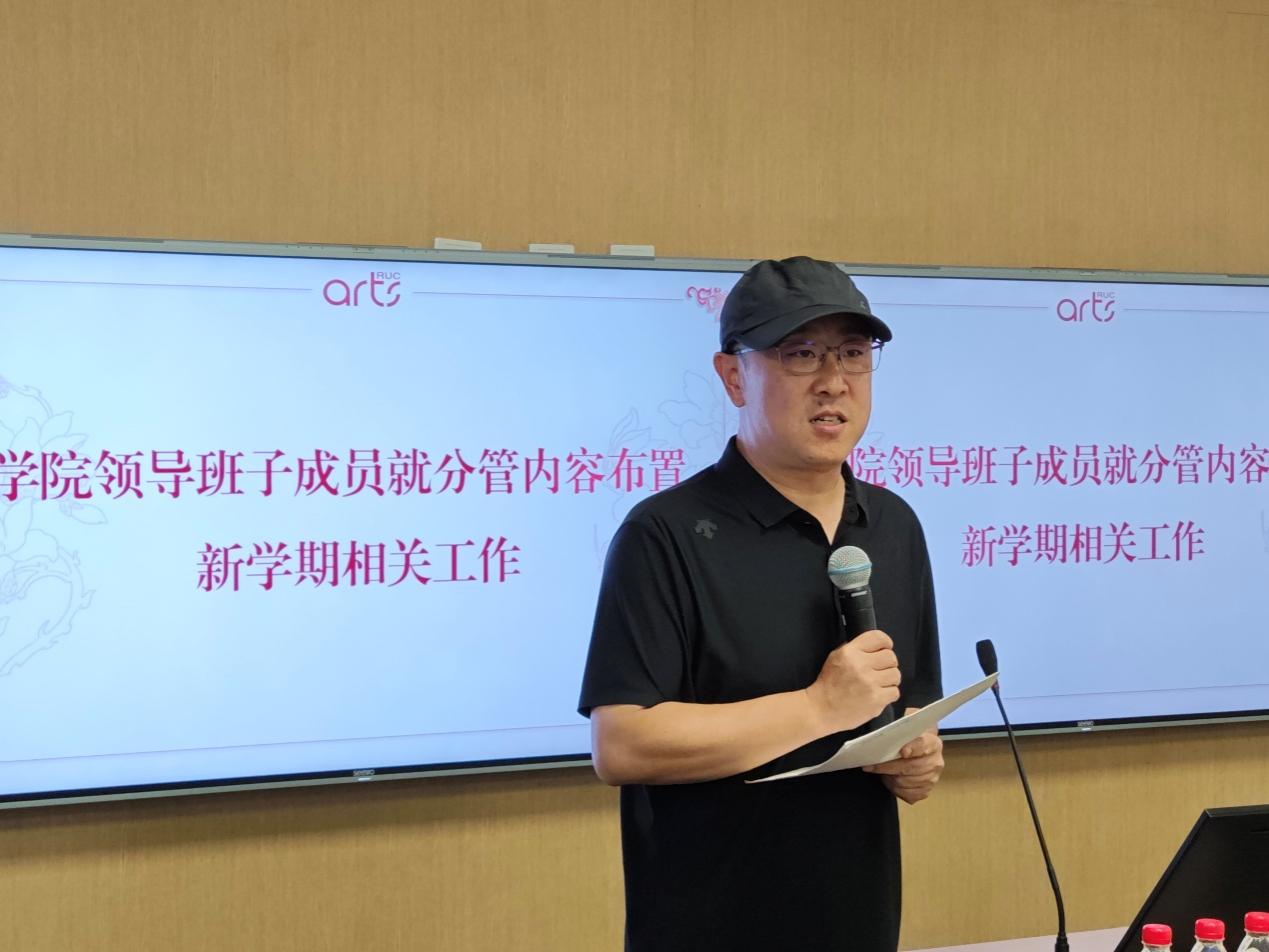 学院领导班子成员按照分管领域,分别布置了新学期重点工作。李晰副书记针对研究生新生入住新校区可能遇到的新问题,鼓励导师、班主任多关注新生学习、生活、心理状态,遇到问题及时沟通解决;顾亚奇副院长围绕研究生新生入学、导师分配、研究生推免等工作内容,提出新校区新发展,特别强调课堂教学质量的重要性;安姚舜副院长为全体教职工详细介绍了通州校区艺术楼的布局和功能,为教师们答疑解惑,确保楼内用房和设施的正常使用。