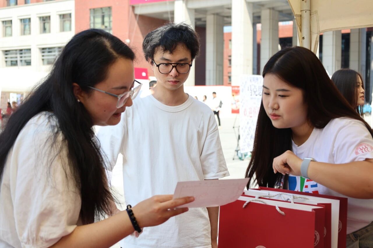 为进一步增强迎新现场的互动性与趣味性,学院在通州校区特别设置了“笑脸签名墙”与“自我肯定夸夸镜”创意打卡区域,中关村校区也设置了新生采访环节,同学们纷纷在签名墙前留下灿烂笑脸和个性签名,并在互动区域愉快交流、拍照留念。轻松活泼的氛围迅速拉近了彼此的距离,也让初入校园的紧张感悄然消散,取而代之的是对未来的满满期待与自信。