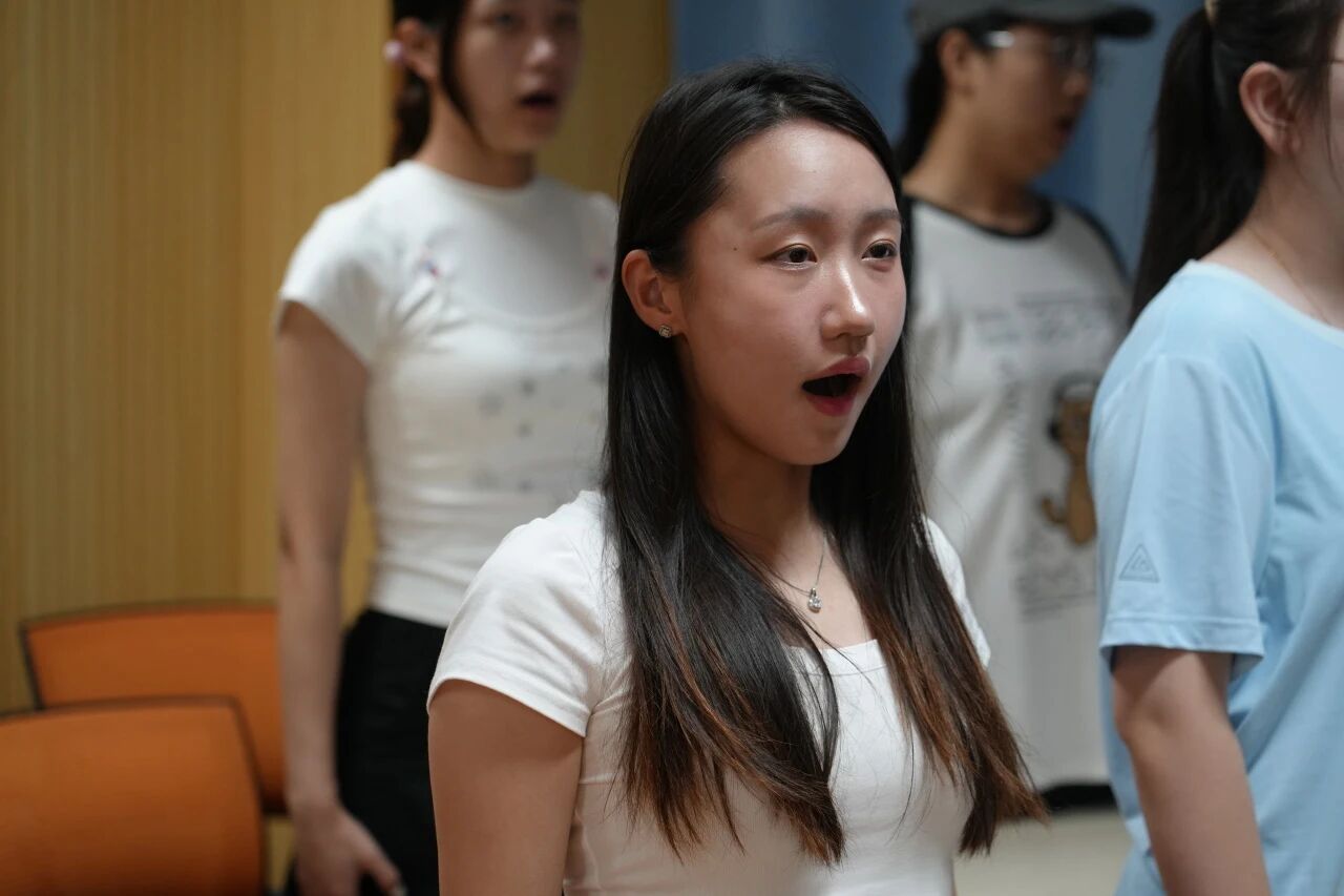 的李晰老师和楚康宁老师为此次合唱排练付出了无数心血——她们不仅在艺术上给予我们专业指导,更在排练过程中提供了温暖而坚实的保障。我们所唱的,不仅仅是一段段旋律,更是一页页不能被遗忘的历史。在一次次排练与感悟中,我逐渐读懂了音符背后沉甸甸的民族记忆与精神力量,也更加明白了“声情并茂”的真意:那是用心灵叩击历史,用歌声传递一代人的庄重承诺。