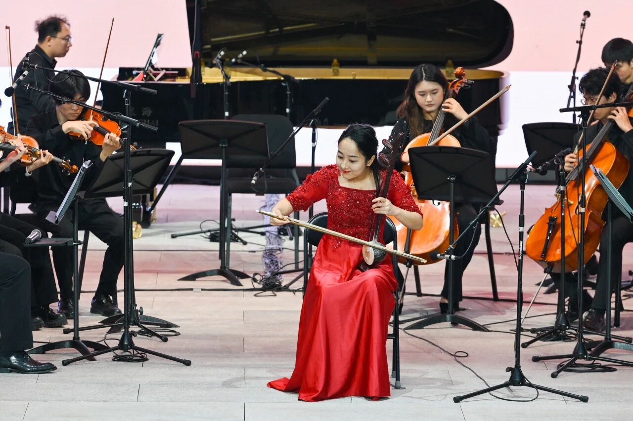 整场演出,既坚守中华文化立场,又充满时代气息。青年笛箫演奏家张凯强带来的《牧民新歌》,吹响了草原儿女心向党、共建美好家园的喜悦心声;根据各地民歌改编的《茉莉花》《太阳出来喜洋洋》等作品,则展现了中华优秀传统音乐的丰富底蕴与永恒魅力。这生动体现了“把马克思主义基本原理同中国具体实际相结合、同中华优秀传统文化相结合”的实践要求在艺术领域的探索。
