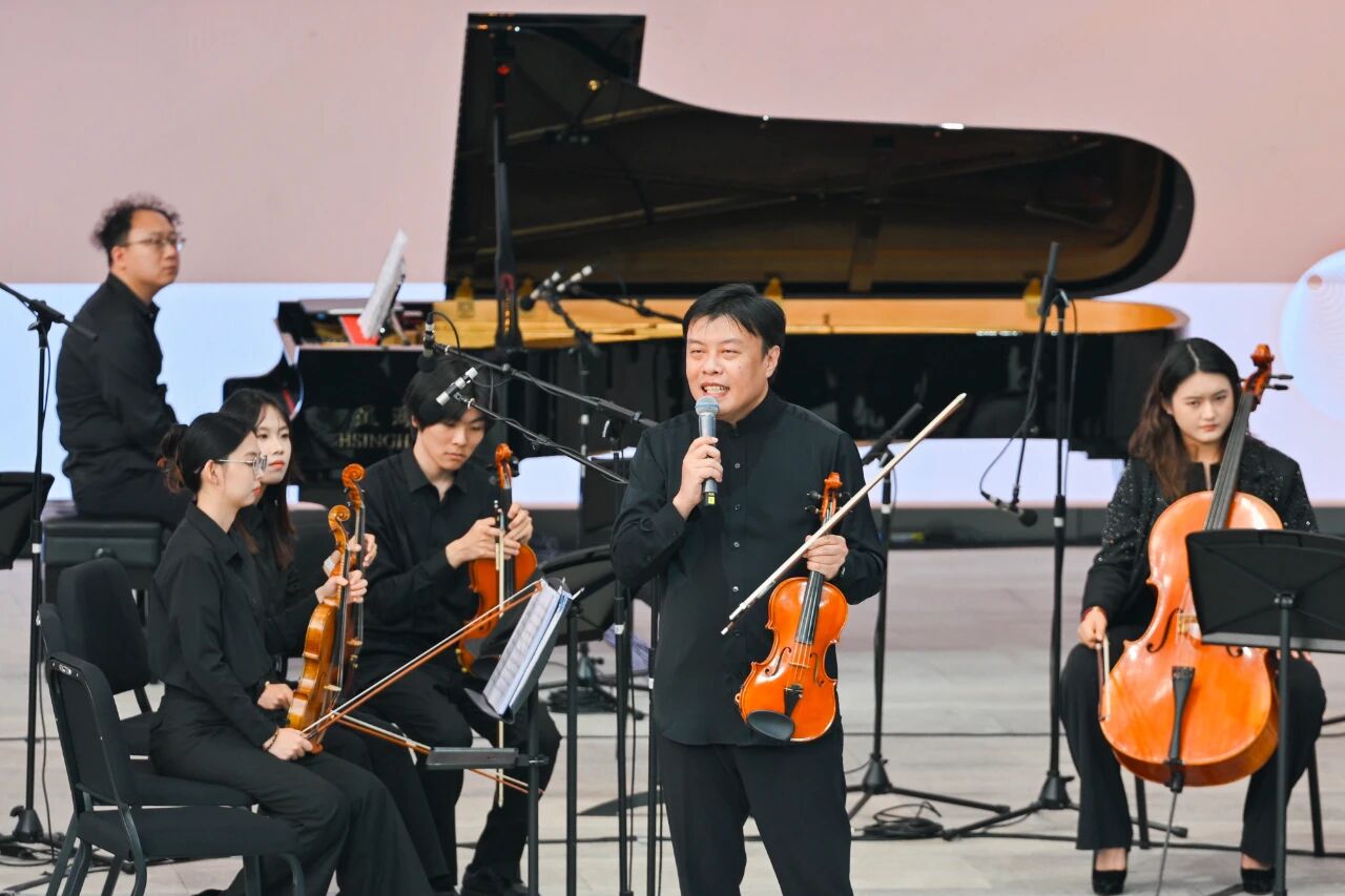 党委副书记、副校长王易出席本场音乐会。中国广播电影交响乐团小提琴首席、我院首届校友姚亮倾情加盟,以精湛琴艺增添璀璨光华。
