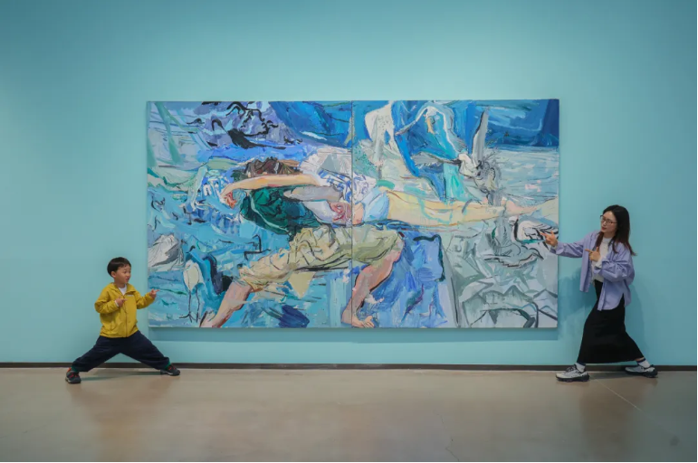 此次展览共展出闫平的81件绘画精品,分为“温柔的腹地”“躺在海面上”“枝蔓的升腾”“流光与虚构”“天之涯”以及结合诸暨特色产业创作的在地单元“采珍珠”六大主题。展览作品色彩浓郁靓丽,笔力隽永遒劲,展现了闫平热情豪迈又细致入微的艺术风格。最大尺幅的作品达4米,给观众带来了强烈的视觉冲击和艺术享受,展期将持续至6月28日。
