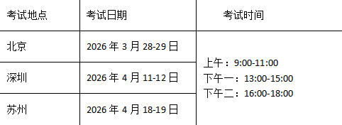 本次校考课程考试共设置北京、深圳、苏州三个考点,申请人可根据实际选择相应考点参加考试。