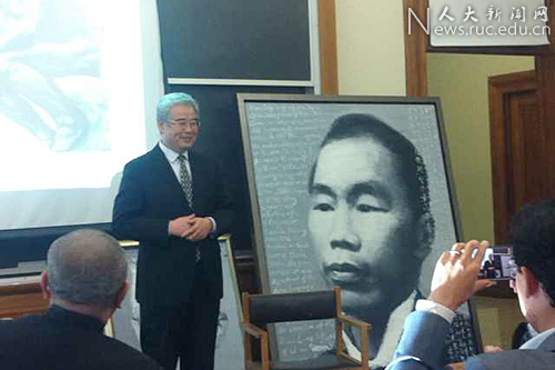 胡适毕业于哥伦比亚大学,是影响现代中国进程的思想家和学者、作家;丁龙是清末美籍华人,临终前以仆人身份将毕生积蓄赠送给哥伦比亚大学,促成建立东亚系,成为了中华文化研究的推动者。哥伦比亚大学现设有丁龙讲座教授席位。徐唯辛教授创作的两幅油画作品具有深厚的历史感和传神的笔力,其间流露出的沧桑感和内在的张力让人难忘。他致力于中国近现代文化人物的研究、创作之举,受到学界的高度赞扬。