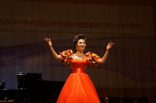 副院长赵方教授。她的音域宽广、嗓音甜美、明亮,演唱以情带声,语言清晰,韵味十足,舞台形象秀丽大方,对作品理解到位深刻,是近年来少见的青年女高音。