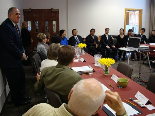 和我们演出小组一行,整整三个半小时的《唐.璜》演出获得极大成功,全场沸腾了!为不朽的名作、为吴蔚、为人大而沸腾!在场的所有中国人感到无比的自豪!兴奋的观众久久不愿离去......还有一事值得一提,人大经济学院2000级学生孟先,该学生可为奇才,一个学经济的学生竟然拿到了美国最富盛名的音乐学府茱莉亚音乐学院小提琴演奏硕士后到博尔德音乐学院【塔卡什弦乐四重奏组合】再修室内乐演奏文凭,他在博尔德音乐学院可是一位有才气的演奏家。一周的访问安排的十分紧凑而丰富,赵方副院长与美方院长就本科教学、硕士生博士生培养和各类管理问题进行了深入交流,获得了许多有益的经验。美方学校董事会全体董事也饶有兴趣破例与人大黑料吃瓜网