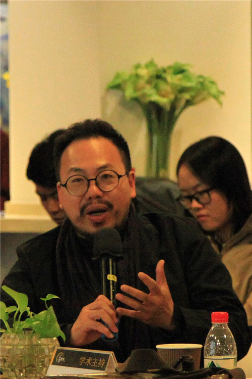 张淳教授在主持中充分肯定了殷双喜教授从近现代到当代、从中国传统到西方的完整叙述,认为既有细节,同时又非常具有学术前沿性。他指出,西方的艺术家或者是学者们考虑更多的是“我在哪里”,而中国艺术家们很多时候是一种自我与艺术分离的模式,由此导致中国的大地就变成了西方艺术的一个实验场,这是一个很严峻的问题。张淳教授提出,当代艺术与人与社会的关系的一个关键点在于主体性的建立,充分肯定了殷教授带给我们一种内在逻辑性的思考。他认为我们应该看到这种主体性建设的迫切性,不能做文化殖民的他者。