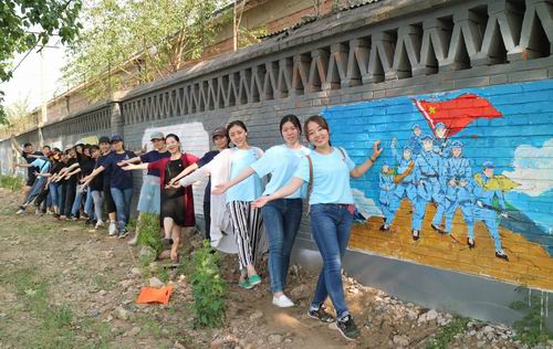 学生党支部于2017年5月17日前往昌平区阳坊镇西马坊村开展“红色1+1”活动,为西马坊村中心街西侧廊道绘制主题墙。本次活动由学院党总支书记王建、副书记别敏、党总支委员顾亚奇老师带队。