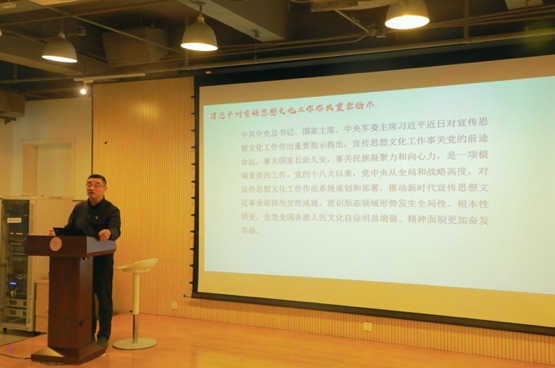 接着,顾亚奇教授结合“国风文创大受欢迎”“华为手机崛起”等现象,论证了我国的文化影响力正在一步步扩大,进而引出“习近平文化思想”提出的及时性和深刻内涵。他向学员介绍了全国宣传思想文化工作会议精神:坚持不懈用习近平新时代中国特色社会主义思想凝心铸魂,在真学真懂真信真用、深化内化转化上下功夫。巩固壮大奋进新时代的主流思想舆论,以强信心为重点加强正面宣传,提高舆论引导能力。作为艺术专业的大学生,促进文化事业和文化产业繁荣发展,推动中华优秀传统文化保护传承是应有的责任,要做好新时代文化的发扬传播,做文化自信的坚实载体,增强中华文明传播力影响力。