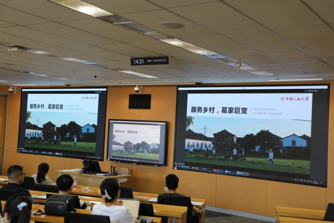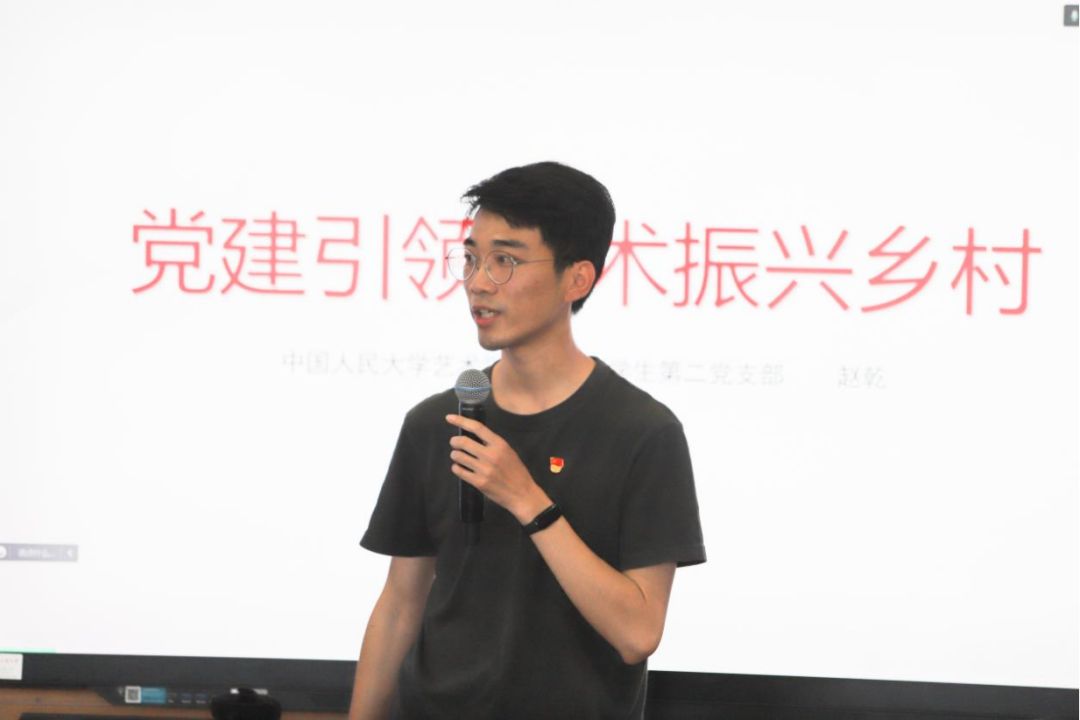 在题为《党建引领艺术振兴乡村》的主题宣讲中,赵乾首先回顾了党的十九大以来党和国家推动乡村振兴工作的政策发展,分享了支部党员参加由陈炯教授带领的“艺乡建”团队坚持“为人民服务”“为人民而艺术”,服务乡村,开展艺术振兴乡村的实践案例。他表示:艺术振兴乡村是激发乡村内生动力,增加农民收入、实现有效治理。通过艺术的手段,统筹推进农村经济建设、政治建设、文化建设、社会建设、生态文明建设和党的建设,走中国特色社会主义乡村振兴道路,使艺术振兴乡村战略真正成为造福于民的好模式。