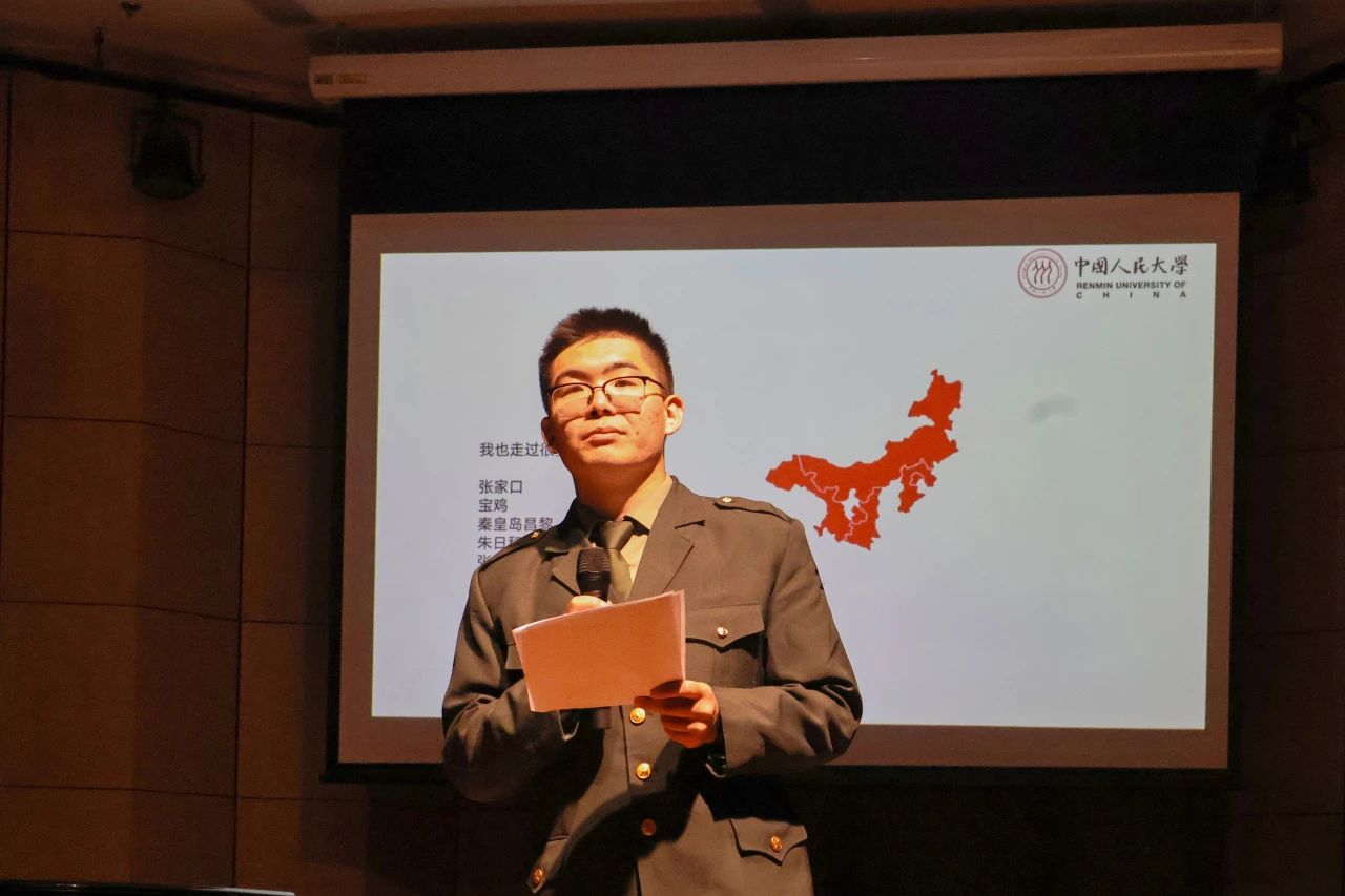 随后,2024级硕士研究生王汝灏,以其服役于中部战区陆军某野战部队的亲身经历,生动地讲述了两年军旅生涯如何成为他找到人生方向的关键转折点。对于王汝灏而言,参军入伍解答了“如何在迷茫中找到自我并确立前进的方向?”这一深刻的人生问题。
